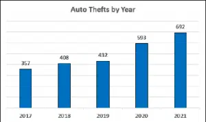 During June, auto thefts have increased 65.4% compared to the same time frame in 2021