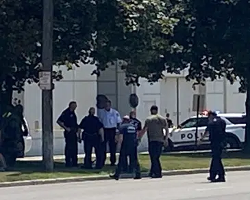 Battalion Chief Jim Bopp says someone brought a briefcase into the building to talk with Lincoln Police. The briefcase was believed to be suspicious and it was taken outside and placed in the grass along 9th Street.