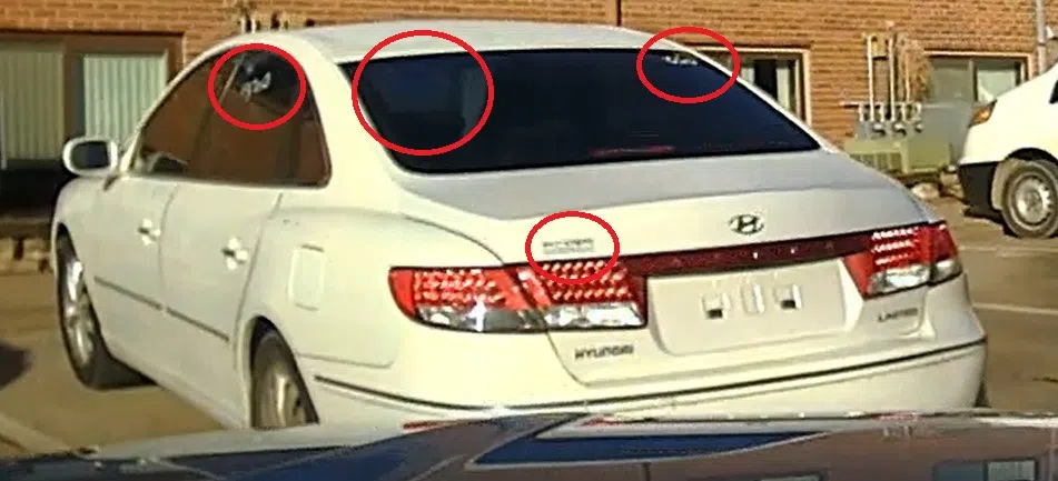 “The officer was out of the cruiser at that point in time.,” Morrow says. “The driver then accelerates in the direction of our officer. Two rounds were fired, striking the vehicle.” She says the car then hit some larger landscaping rocks and drove off.
