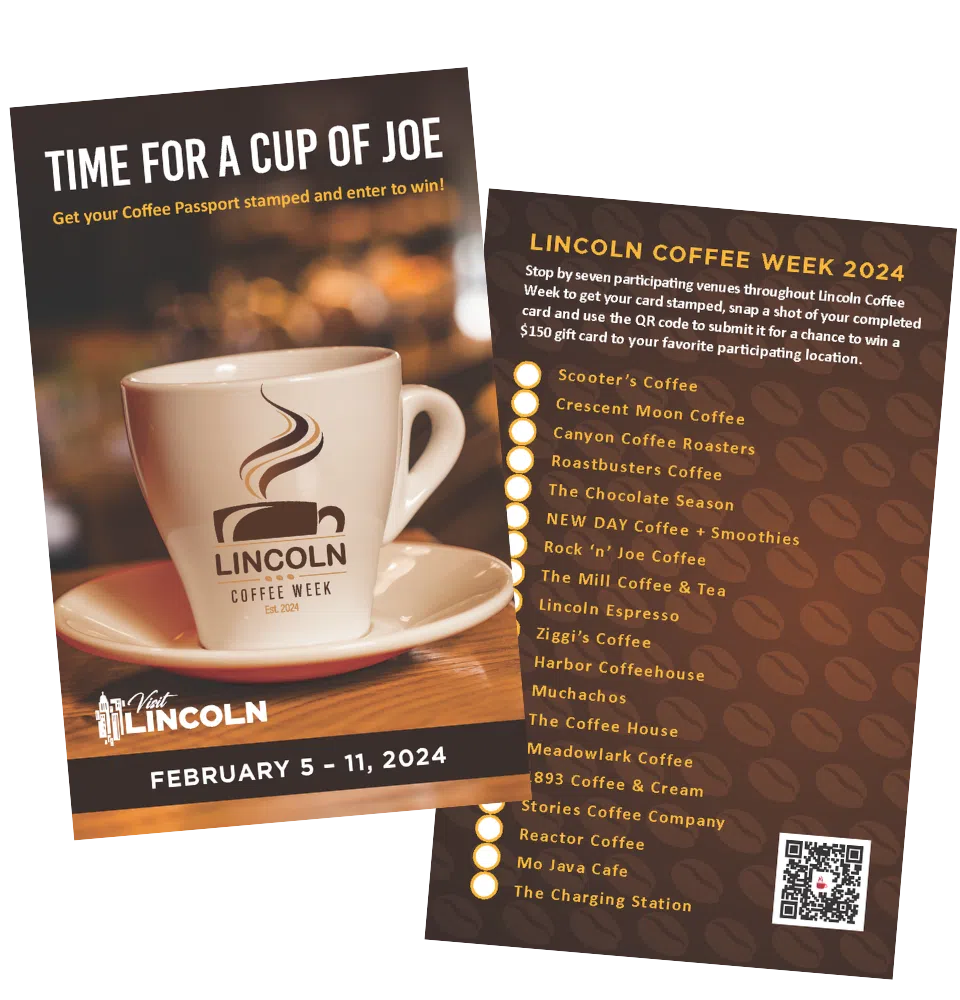Similar to beer week, residents who want to get involved are encourages to pick up their official 2024 Coffee Passport, available at any participating location. Over the week, make a visit to at least 7 locations, make a purchase at each, and collect a stamp. Then snap a picture and submit your completed passport at lincoln.org/coffee-week to be entered to win a $150 gift card to your favorite participating location.