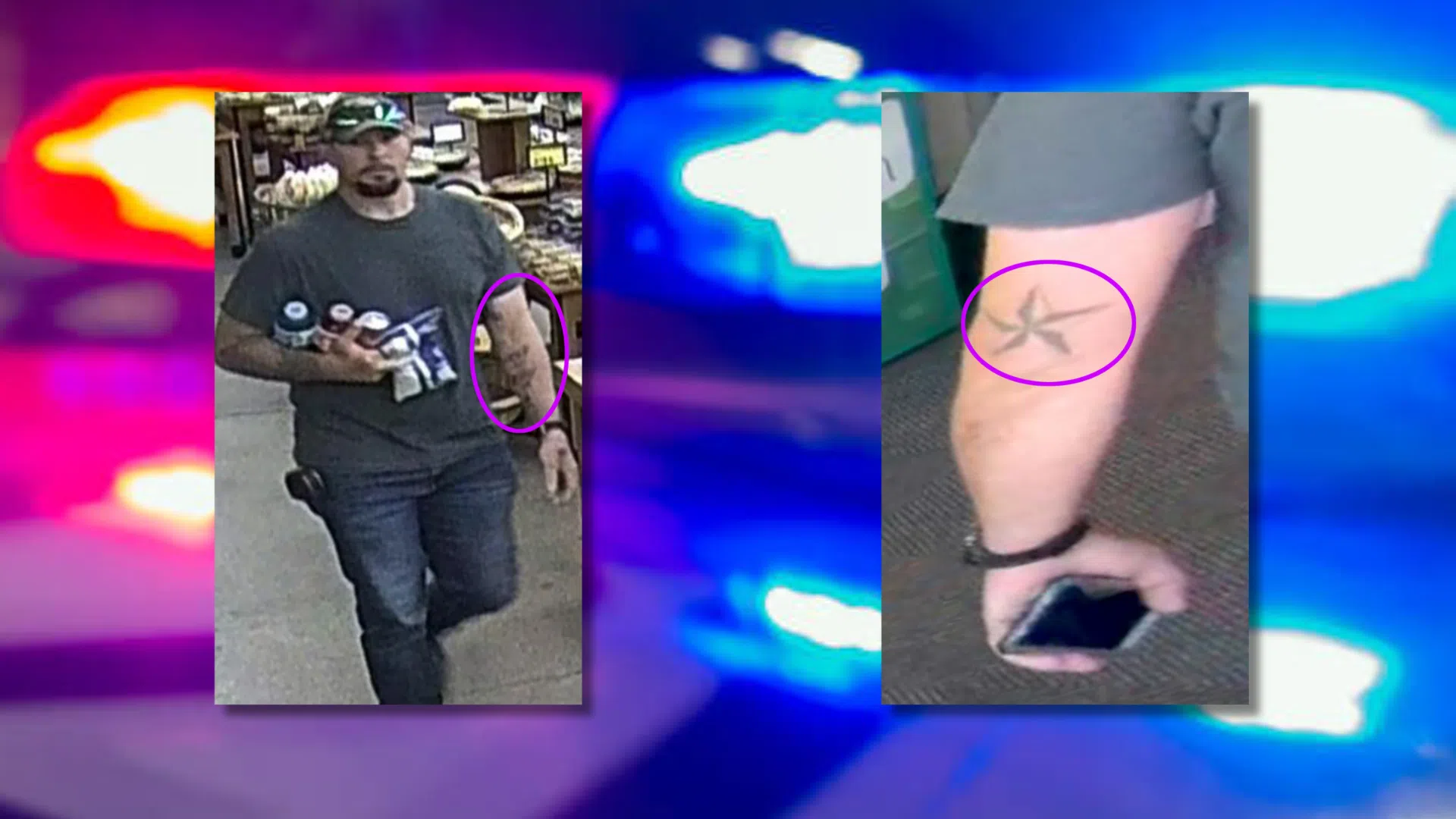 The suspect was seen to have star tattoos on the back of both arms above the elbows, a heart tattoo on his left hand, and large tattoos on both forearms.