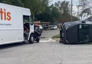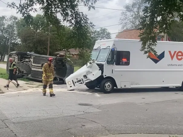 When they arrived the found a van on it’s side and a large box truck in the intersection.