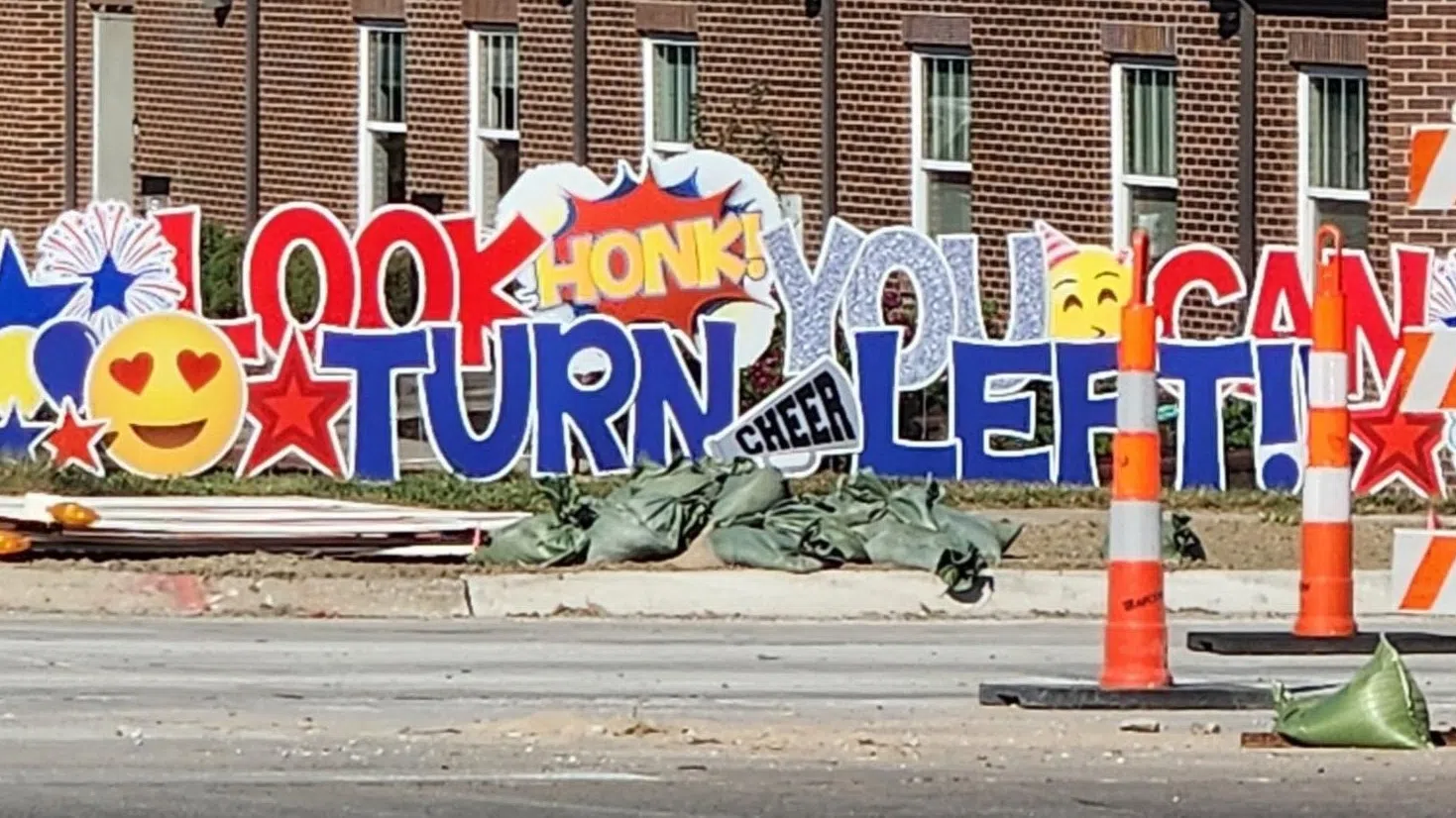 The facility’s entrance on 56th had been closed for months due to utility work and road projects, forcing residents, staff, and even emergency responders to rely on the Pioneers side entrance. When barricades finally came down last week, the team at Lexington marked the moment with a lighthearted display from the company “Card My Yard,” which read: “Look (Honk) You Can Turn Left!”