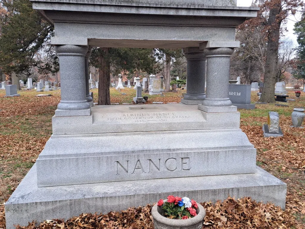 Nance's monument, now vandalized. Dec. 11, 2025. (Photo: Chris Lofgreen, KLIN News)