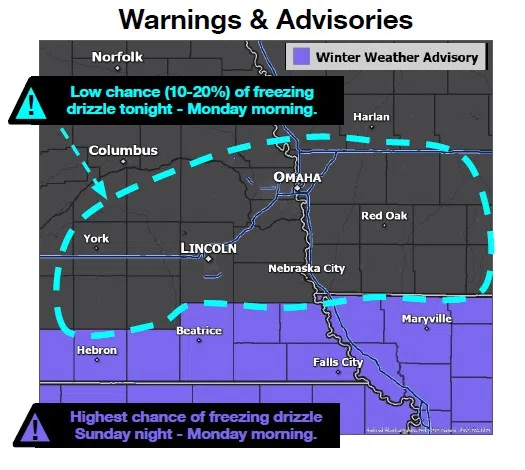 Freezing drizzle is expected to mix in Sunday night into early Monday morning, with the it and the snow combining for slick roads as temperatures cool.