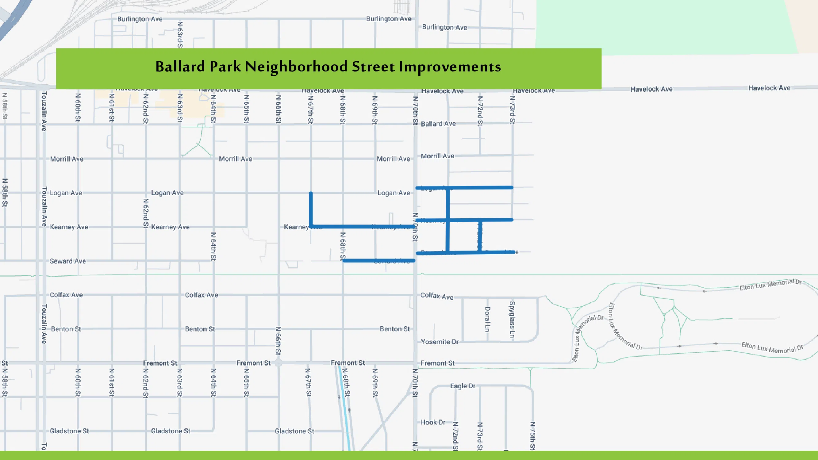 Residential street improvement projects will include work in the Ballard Park, Highlands North, Rousseau, Pyrtle, Eastborough and other neighborhoods. Arterial street projects will include work on “O” Street from Ninth to 16th streets, Vine Street from 66th to 70th streets, Cornhusker Highway from 39th Street to L-55-X, 27th Street from Nebraska Parkway to South Street and 48th Street from Normal to Cotner boulevards.