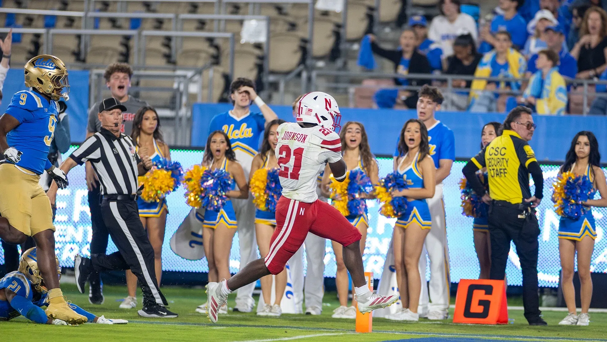 Emmett Johnson's 129 rushing yards, 103 receiving yards and three touchdowns propelled Nebraska to a 28-21 victory over UCLA Saturday in Pasadena, Calif. Johnson became the first-ever Husker running b...