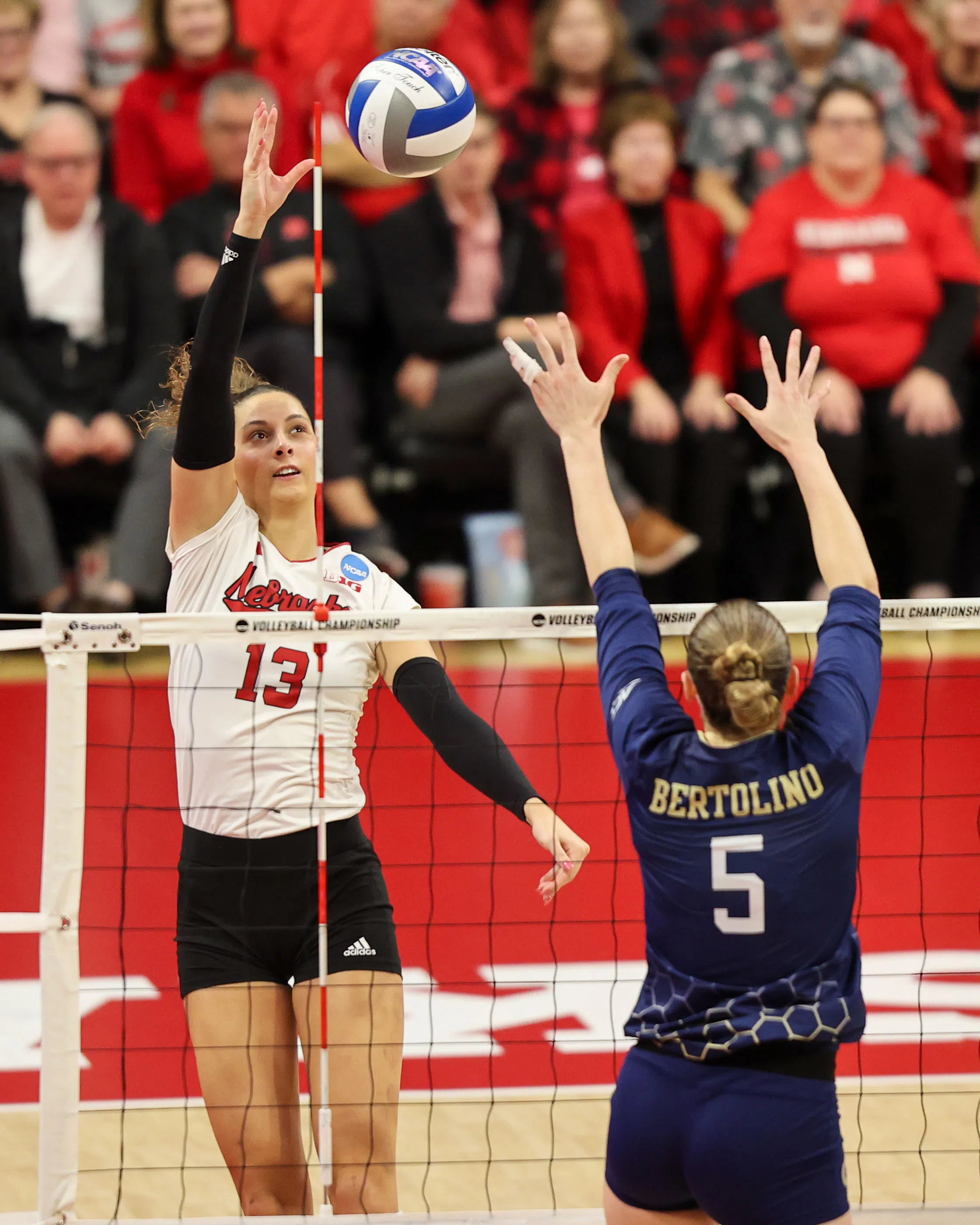 At the site of this year's NCAA semifinals and national championship match, No. 5 Nebraska looked the part of national champion frontrunner Sunday. The Huskers (10-1) swept No. 4 Louisville (8-2), 25-...