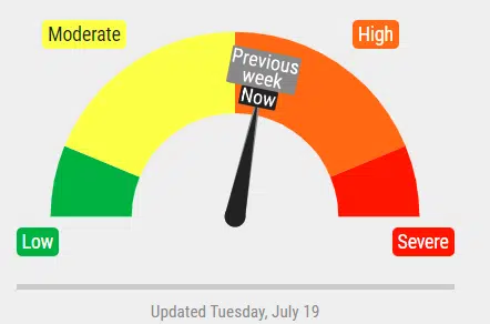 The COVID-19 Risk Dial will remain in low orange for a second week according to the Lincoln-Lancaster County Health Department. The orange position on the dial indicates that the risk of the virus spr...