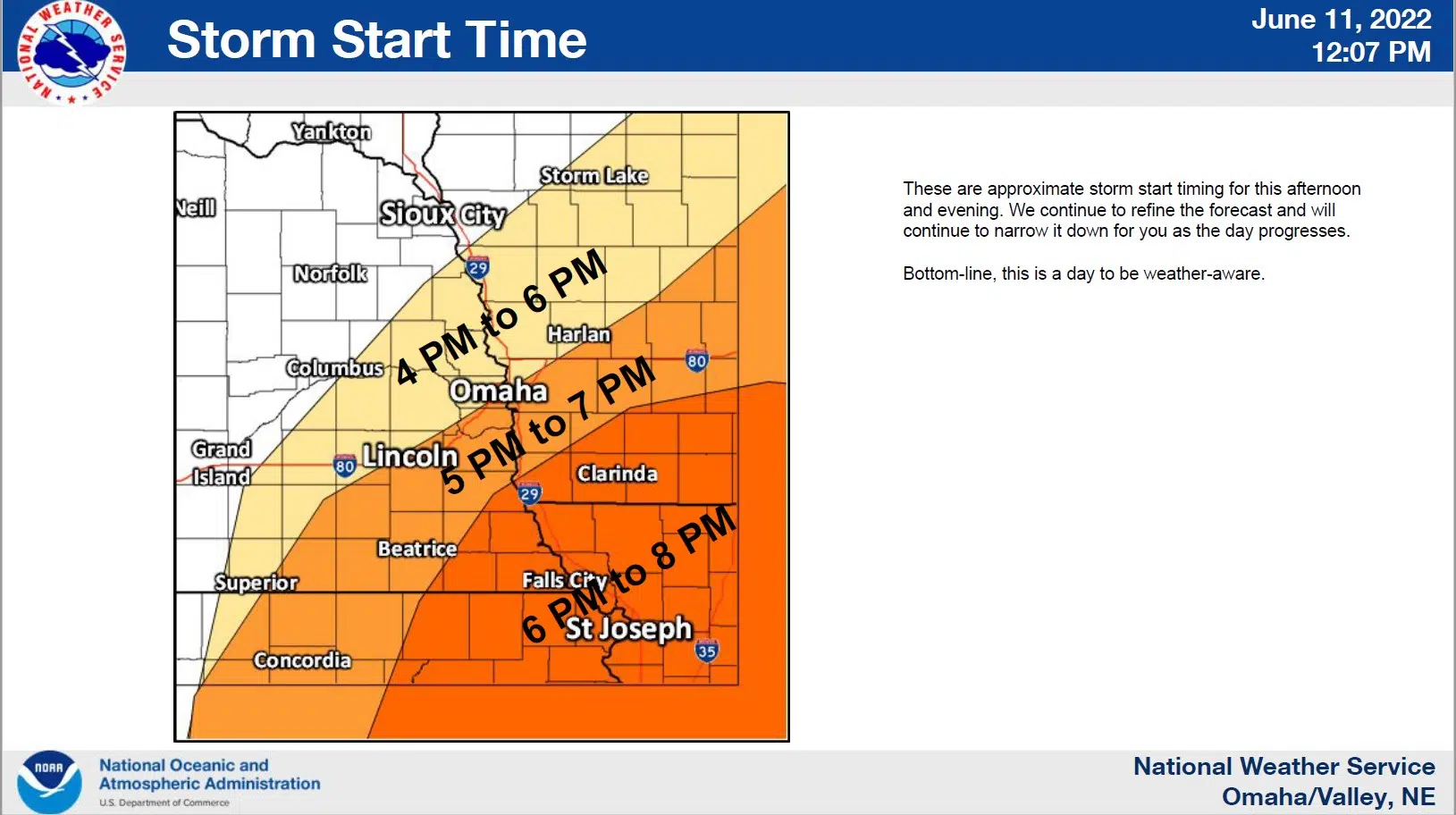 TORNADO WATCH OUTLINE UPDATE FOR WT 345 NWS STORM PREDICTION CENTER NORMAN OK 335 PM CDT SAT JUN 11 2022 TORNADO WATCH 345 IS IN EFFECT UNTIL 1000 PM CDT FOR THE FOLLOWING LOCATIONS . NEBRASKA COUNTIE...