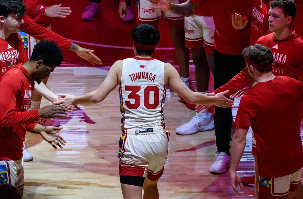 Amarillo Mullen Keisei Tominaga walks out during Nebraska's team introductions prior to the game against Penn State. Amarillo Mullen Josiah Allick (53) lays the ball in basket. Amarillo Mu...