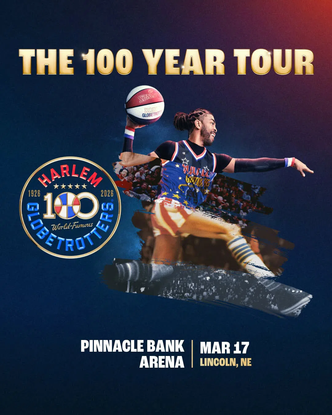 Leaders in breaking barriers and making history, the world-famous Harlem Globetrotters have announced that Lincoln will be a key stop on the team’s 100 Year Tour—the most legendary tour in Globetrotters history—playing at Pinnacle Bank Arena on March 17. This centennial season is a once-in-a-century celebration of 100 Years of jaw-dropping “No Way!” moves, 100 Years of “Wow!” moments, and 100 Years of basketball thrills. From gravity-defying dunks to game-changing tricks, fans will feel the history, the joy, and the fun that only the Globetrotters can deliver.
